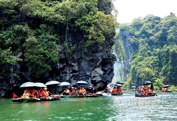 After lunch in a local restaurant, proceed to Tam Coc where you continue your trip with a relaxing sampan boat. The 1.5 hour boat ride offers you endless photo opportunities. On the rowing boat trip, you will go through the 3 Tam Coc Caves and pass the rice fields. There you get a chance to take the nice photos of nature and local people working on the riverside. This area used to be the shelter for Vietnamese people and national army in 13th century and during American war.